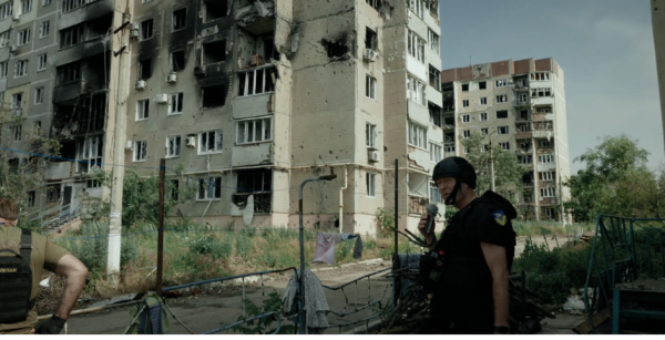 Překonat temnotuNa příkladu několika ukrajinských měst snímek demonstruje krutou proměnu rušných center v místa zkázy. Ukazuje zničenou infrastrukturu, unavené obyvatelstvo, ale i neuvěřitelnou vzájemnou podporu civilních obyvatel, jejich víru a vůli postavit se společně nepříteli.